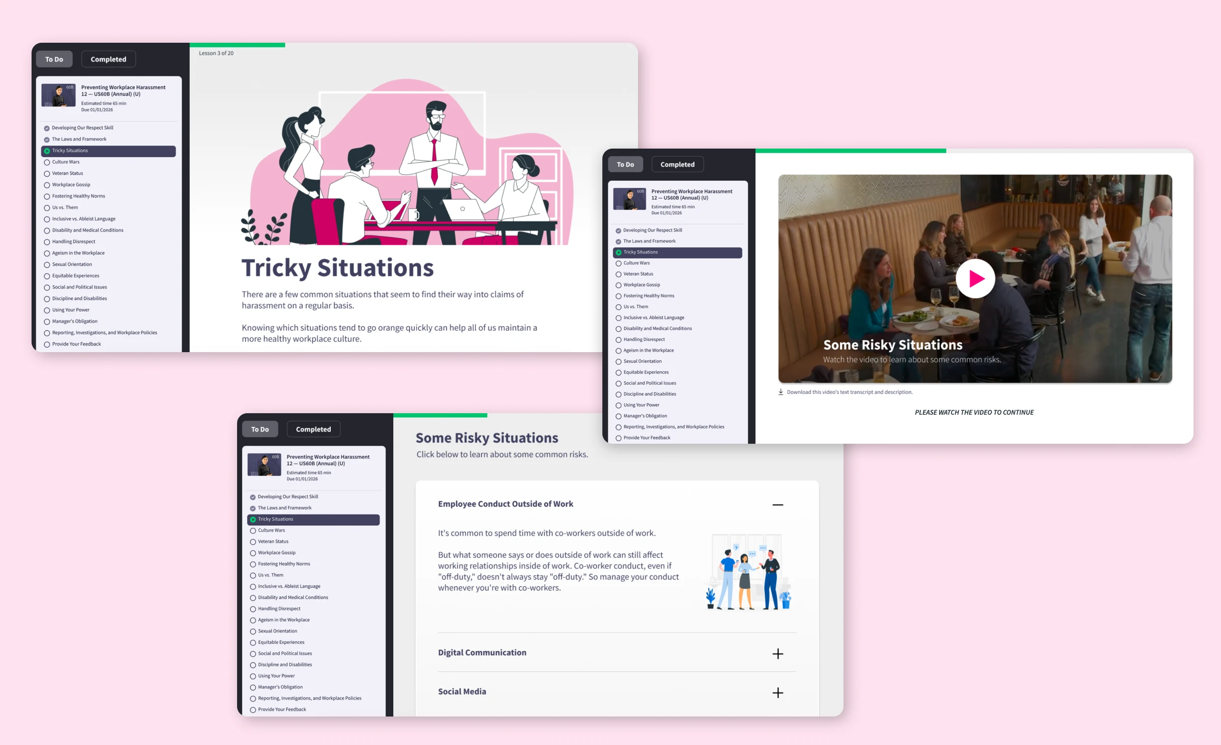 With interactive scenarios, simplified navigation, and integrated discussion prompts, employees engage with training in a way that feels relevant to real workplace situations — not just another compliance requirement.