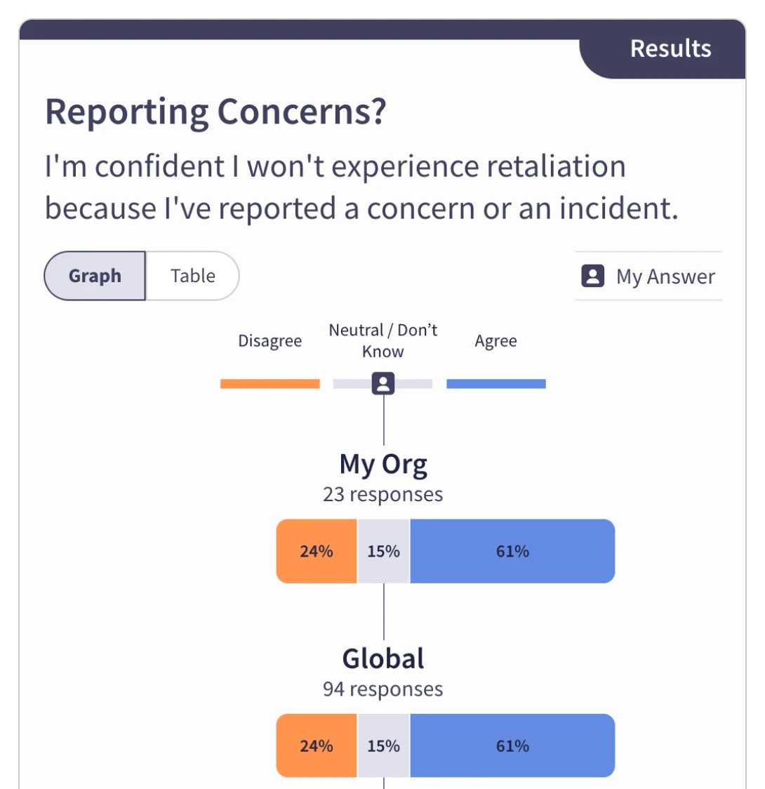- Employee sentiment pulsing questions that provide leaders with insights into their workforce's core cultural competencies
